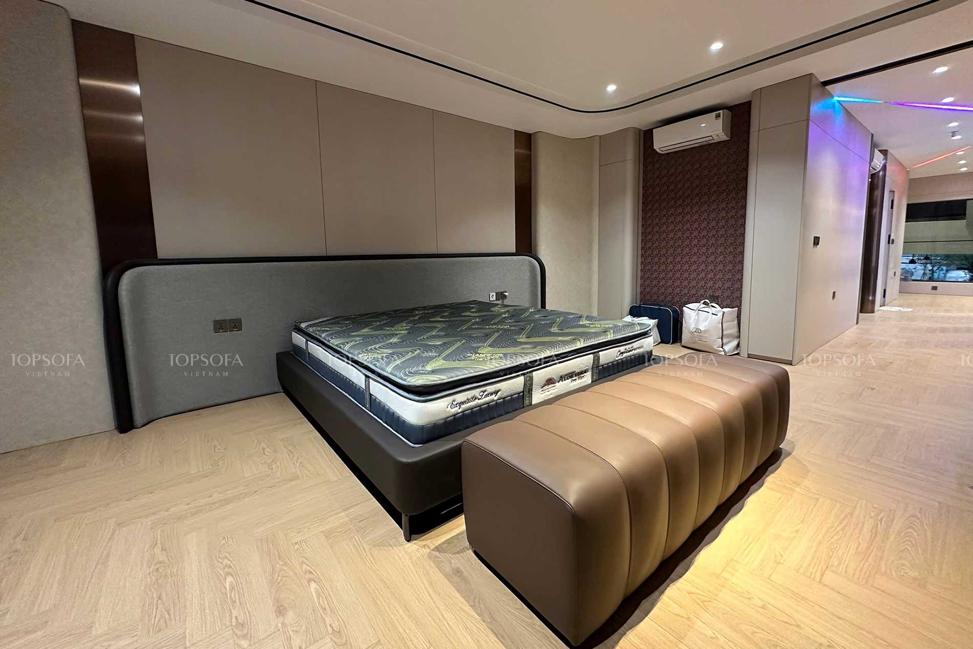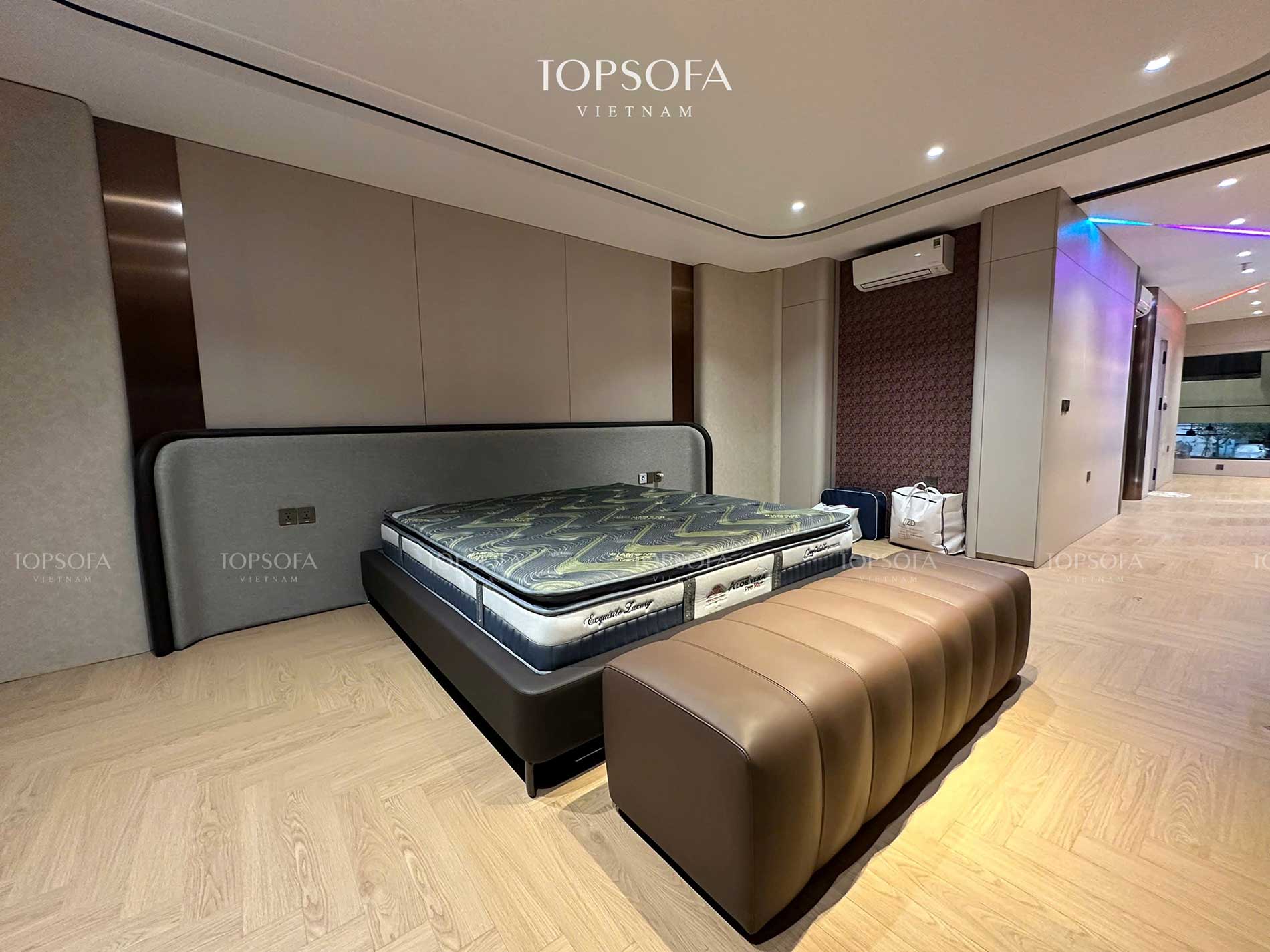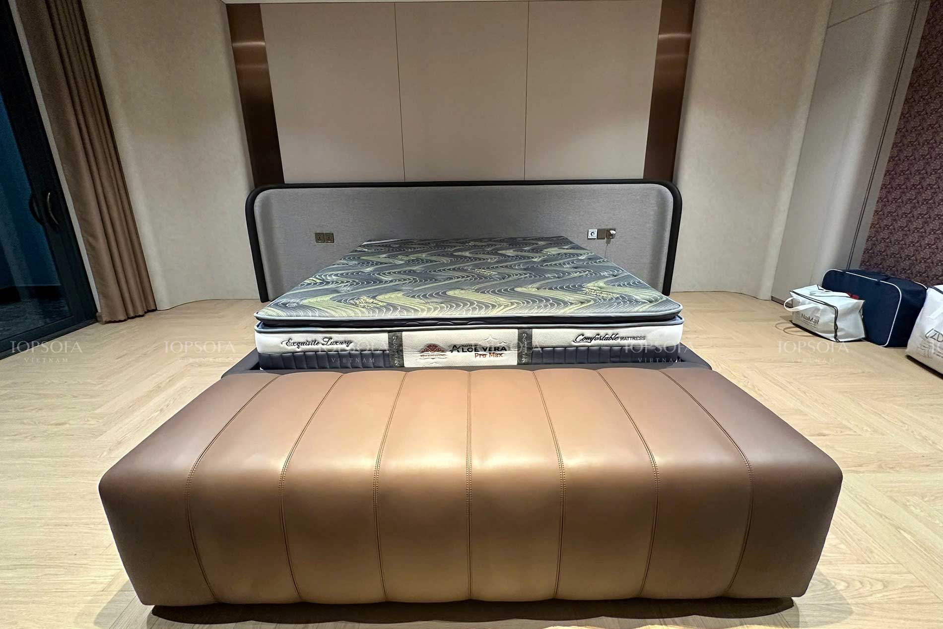 Giường ngủ bọc da kết hợp hài hòa giữa công năng và thẩm mỹ, đáp ứng nhu cầu nội thất tiện nghi và đẹp mắt của người tiêu dùng hiện nay.